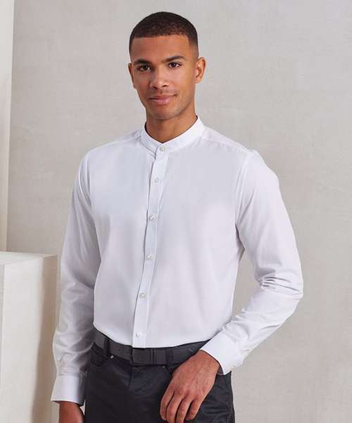 PR258: Banded collar grandad long sleeve shirt
