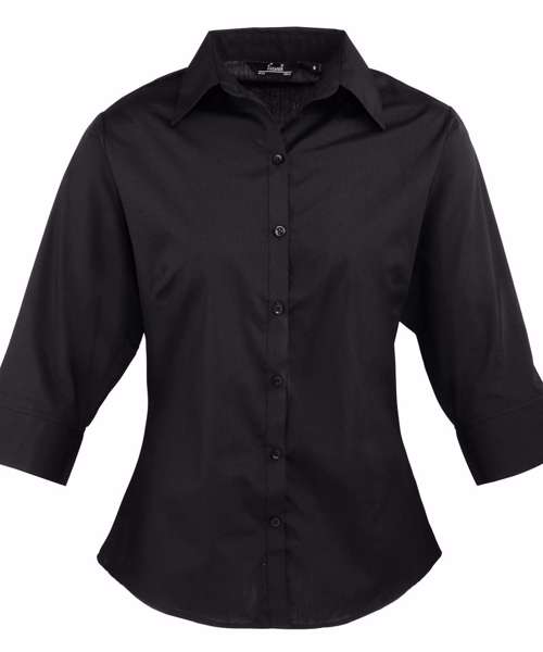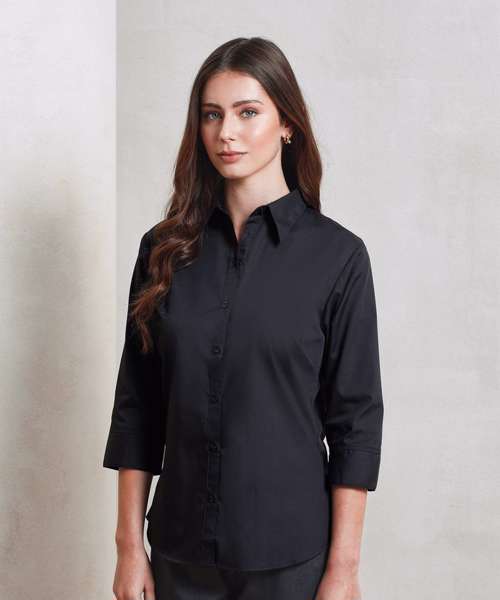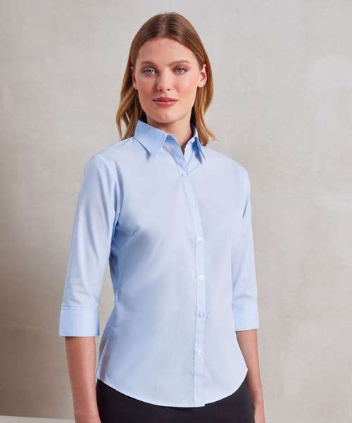 A semi fitted blouse for women that offers the wearer a fashionable three-quarter length sleeve. The sleeve is finished off with a neat vented cuff and the bust and back area offers a flattering cuts that gives the blouse its fitted appearance.