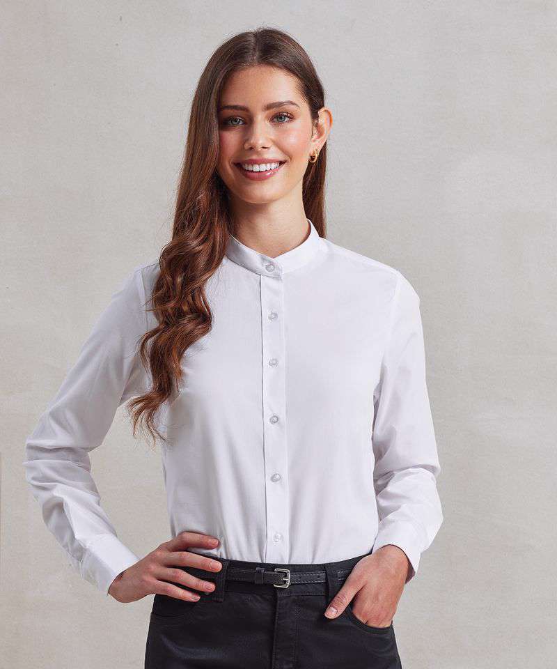 PR358: Women's banded collar 'grandad' shirt