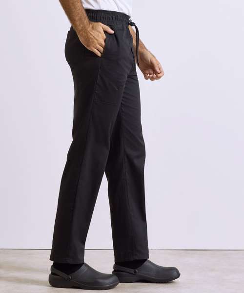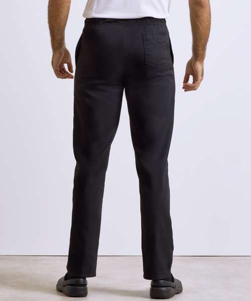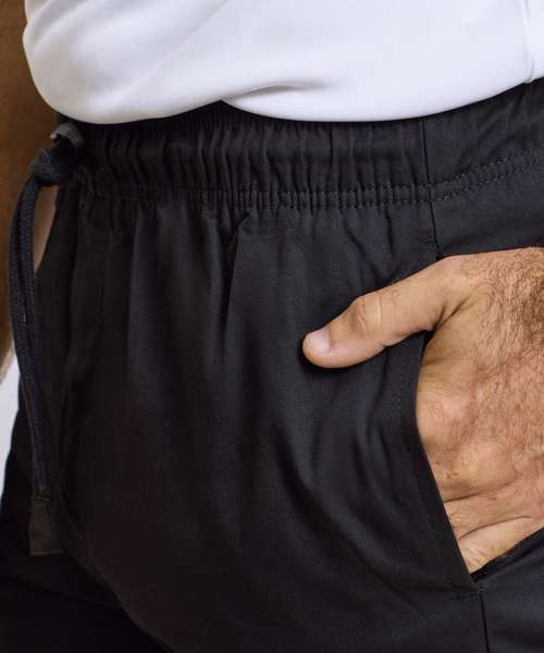 A great solution for chef and the team, these trousers offer a more fitted style on the leg but still remain comfortable for long shifts during service. Features a handy pocket on the right leg and a left rear patch pocket. Fastens with zip fly and draw cord and is finished with an elasticated waist.
