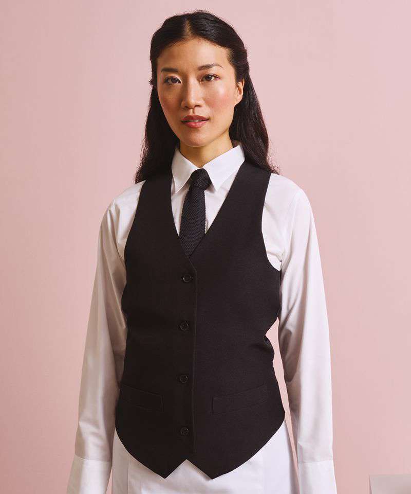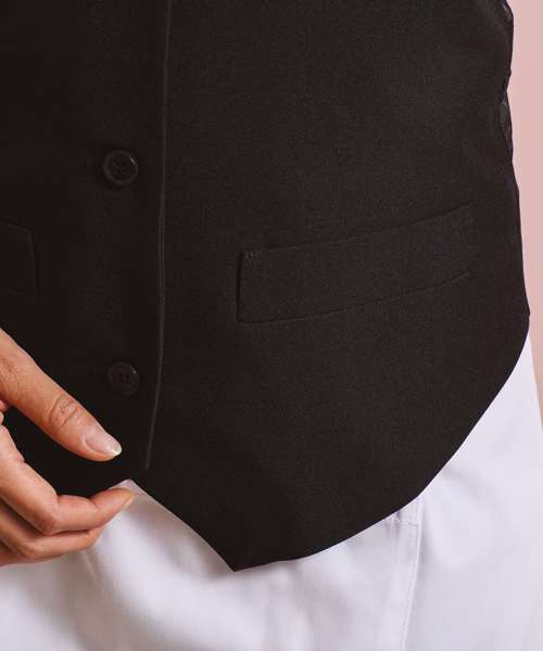 This ladies waistcoat comes with a four button fastening down the front with two functional watch pockets to the sides. Fully lined and with a satin back, this waistcoat features a buckle so the wearer can adjust the fit.