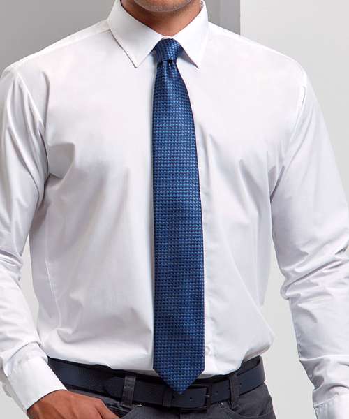 A full length tie with a classic Puppy Tooth pattern using a number of coloured yarns to create a slight contrast effect. A great looking tie for the office with your everyday work shirt or for teamwear uniform to accompany a blazer.