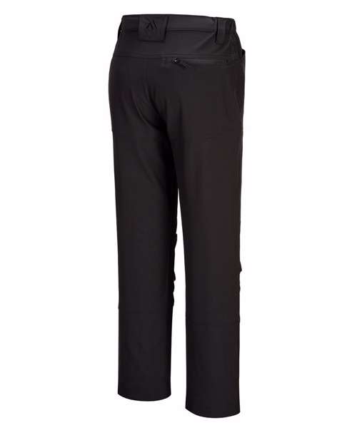 The 4 pockets provide excellent storage without adding bulk to the garment. Side elastic and 4 way stretch provide superior comfort and suitability on this work trouser and all in a recycled polyester.