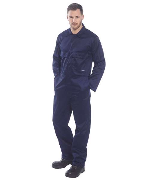 Winning features of this durable coverall include two chest pockets one rule pocket and a concealed stud front. Perfect for all your working requirements.