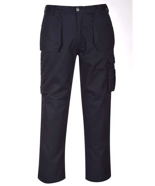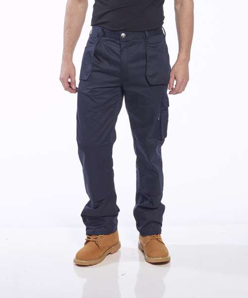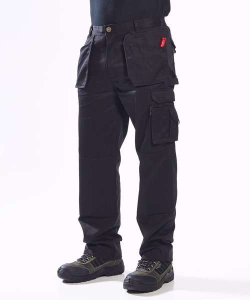 Constructed from 300g Kingsmill fabric, the Slate trouser offers extra strength and abrasion resistance. Winning features include, tuck away holster pockets, knee pad pockets, hammer loop and low profile branding. The mobile phone pocket is lined with anti shock fabric and will accommodate new smart phone dimensions.