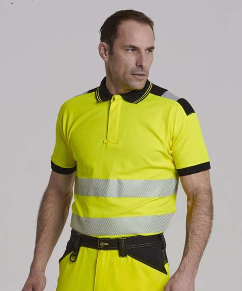 CE certified. Chest pocket. Side vents. Contrast collar with fluorescent stripe. UPF 35+. Moisture-wicking and breathable fabric . Designed with a comfort fit. Contrast colouring. Complies with RIS 3279-TOM for rail industry (orange only). HiVisTex™ Pro reflective tape. Complies with EN ISO 20471 standard. Loop at placket. Registered Community Design.