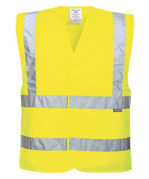 Lightweight. Comfortable. Made using recycled polyester. Reflective tape. Hook and loop closure. Generous fit. CE certified. Certified to EN ISO 20471 after 50 washes. Complies with RIS 3279-TOM for rail industry (orange only)