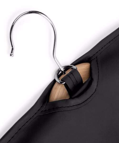 Hanging loop for folding. Identification window. Full length zip closure.