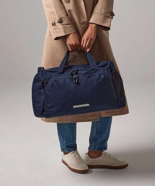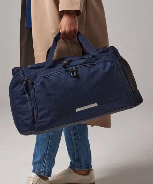 Enhanced visibility reflective accents. Durable 420D Polyester base panel. D-zip opening for ease of access. Zippered front pocket. Side mesh pocket. Zippered end pocket. Baseboard for even weight distribution. Adjustable shoulder strap. Padded handles. Internal identification label. Reach certified.