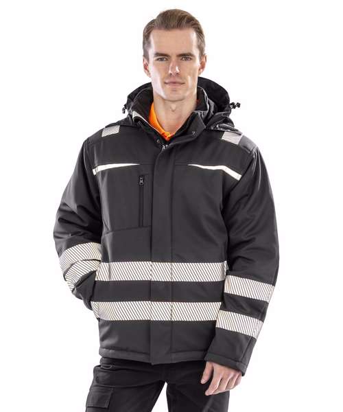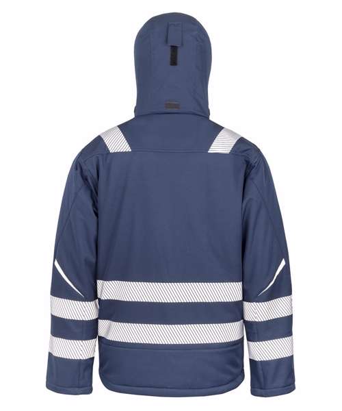 The new generation in safety wear! This 3-layer performance dynamic softshell brings style, fit and comfort. The durable water-repellent fabrics, breathability, inner storm cuffs and hood all add to the windproof protection whilst the modern printed chevron design brings the EN ISO 20471 Class 2 visibility that allow this beautiful jacket to stand out from the crowd!