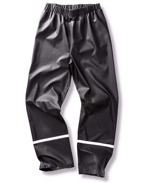 Classic, Scandinavian-styled, easy-to-wear overtrousers in deluxe waterproof PU fabric with reflective leg bands.