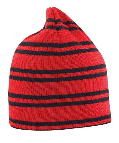 Longer fashion fit team beanie hat , reversible to solid colour or funky striped knit.