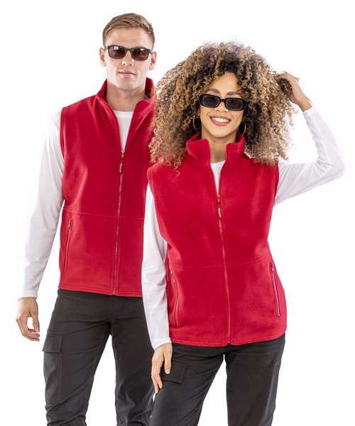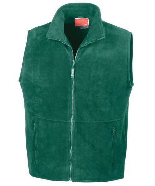 Pill-resistant unlined polyester fleece bodywarmer. Stretchy fit. Full front zip fastening. 2 large front pockets with active fleece by Result® lining. Decorative body yoke. Concealed front reverse. Unlined. Anti-pilling.Decoration Guideline:Decorating methods: Embroidery. Decorators access point: Open.