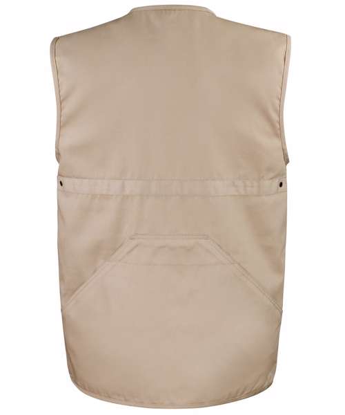 Multi-pocketed gilet made from 220gsm heavy twill cotton and features half-mesh lined back. Design includes 8 pockets including 2 inside pockets, mobile phone pocket and large specially designed back pocket for anglers. Concealed access for print and embroidery.Decoration Guidelines:Decorating methods: Embroidery, Direct print & Transfer print. Decorators access point: Open.
