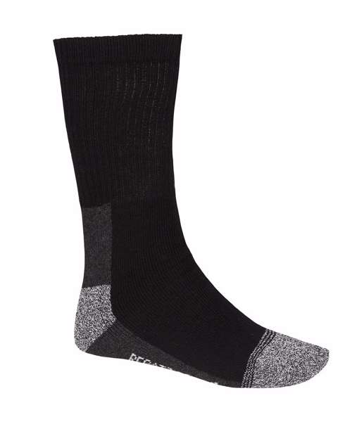 The Pro work socks from Regatta Professional. Comfortable and hard-wearing, these socks feature a durable loop stitch cotton blend for long-lasting comfort. There’s a cushioned heel and toe, too, and the ribbed ankle provides extra support. Ideal for working on the farm or at the stables. Pack of 5.