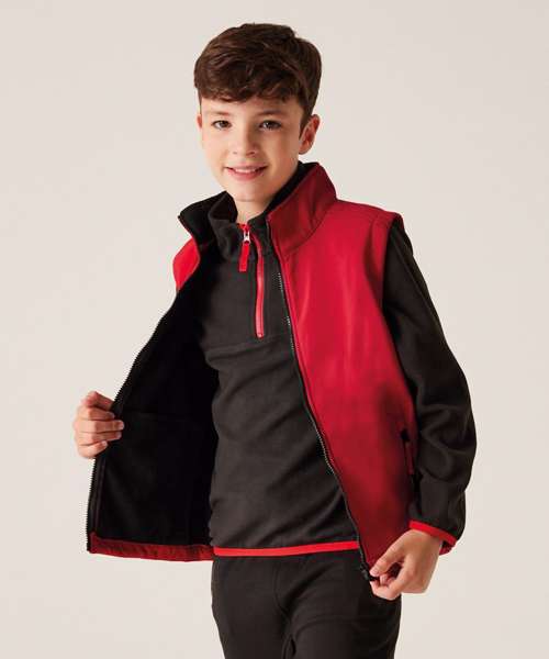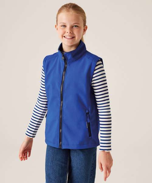 The Junior Ablaze softshell suit from Regatta Professional is designed for little adventurers. Stretchy and warm on the back, the softshell fabric stays comfortable for kids during their activities. Reflective details enhance visibility.
