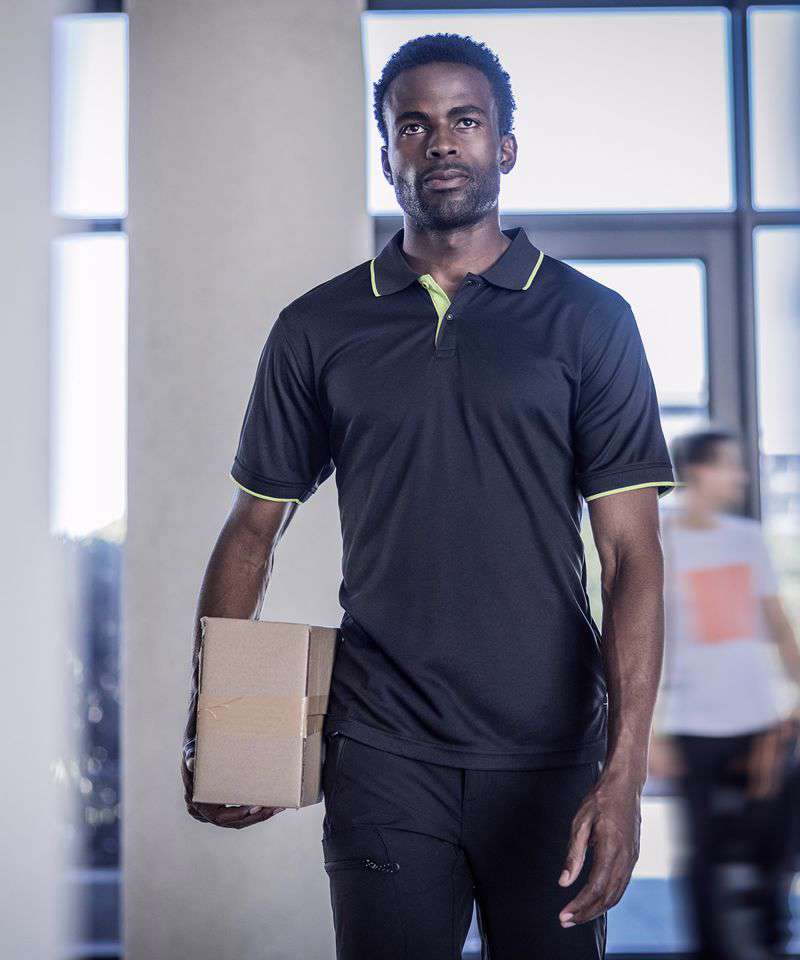 The Navigate short sleeve polo, from Regatta Professional, is a work wardrobe essential. This men’s polo shirt is made from textured polyester piqué fabric for lasting style. Good wicking performance and an antibacterial coating will keep you fresh, on the job, and it’s finished with a trendy contrast-colour tipped collar. REACH, GRS certified fabric and ETI compliant factory certified.