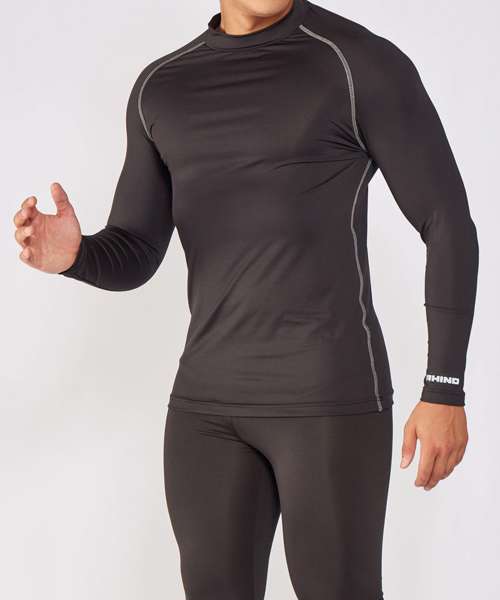 Long sleeve turtleneck. The turtleneck can be personalised with a logo or text. Rhino logo to the rear of the turtleneck. Keeps you warm and dry in cold conditions. Fabric is lightweight, soft, easycare and dries quickly. Fits like a second skin. Regulates temperature of the body. Raglan sleeve design allows increased mobility and a full range of motion. Suitable for all sports (including football, rugby, hockey, golf, cricket, winter sports, cycling and equestrian), and work.