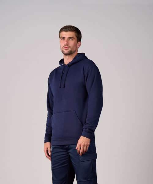 Comfortable and classic, the Pro hoodie is an essential addition to your workwear offering. Cut in a modern and comfortable fit, with twin-needle stitching for extra durability, the slip on style has a drawcord hood and front kangaroo pocket.
