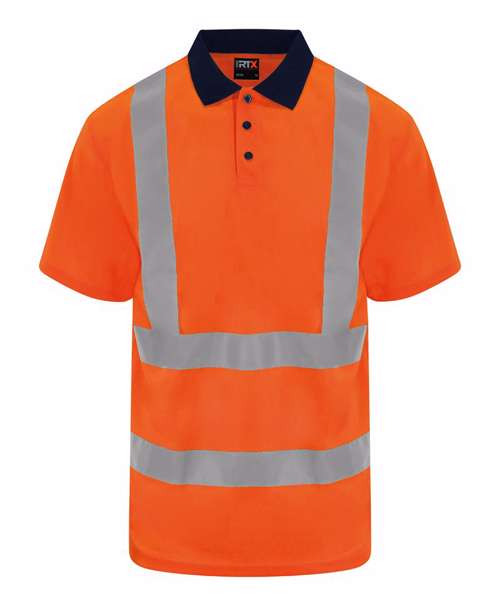 Certified EN ISO 20471:2013+A1:2016. RIS-3279-TOM ISSUE 1:2016 (Orange only). HV Orange/Navy & HV Yellow/Navy - Class 2. Ribbed contrast colour collar. 3-button placket, contrast colour buttons plus 1 spare. Twin-needle stitching on shoulder. Twin-needle stitching on sleeve and bottom hem. Side seam vents. Over shoulder and around body reflective tapes. Around body tape finishes before the side seam for comfort and ease of fit.