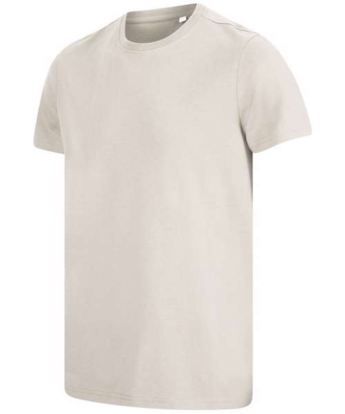Unisex relaxed-fit t-shirt. Set-in sleeves, dropped shoulders. Ribbed crew neck. Twin-needle stitching at hem and sleeves. Brand-free, for easy rebranding. Contains recycled cotton and recycled polyester.
