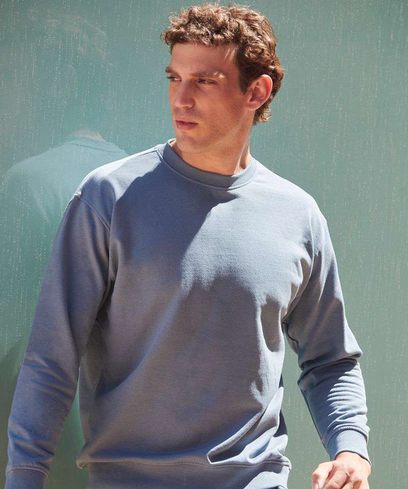Unisex relaxed-fit sweat. Set-in sleeves, dropped shoulders. Droptail hem – curved high front, low back. Ribbed hem cuffs and crew neck. Single Jersey back neck tape and facing. Tonal topstitching detail. Brand-free, for easy rebranding. Contains recycled cotton and recycled polyester.