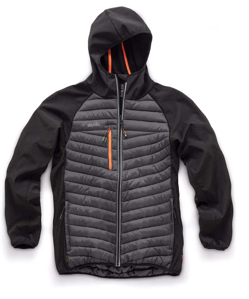 Lightweight, padded softshell jacket made from hard-wearing nylon fabric. Insatherm® padding. Flexible softshell sleeves and side panels. Elasticated hood, hem and cuffs keep wind out and warmth in.