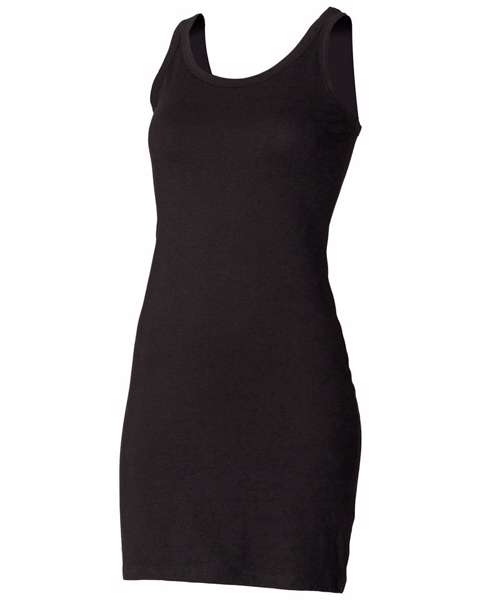 Broader shoulder, modern-look tank very-long length vest in stretch cotton rich fabric for comfort and shape retention. Binding around neck and armholes. Can be worn either as long length tank or a short dress.