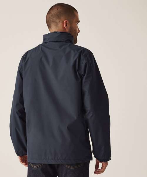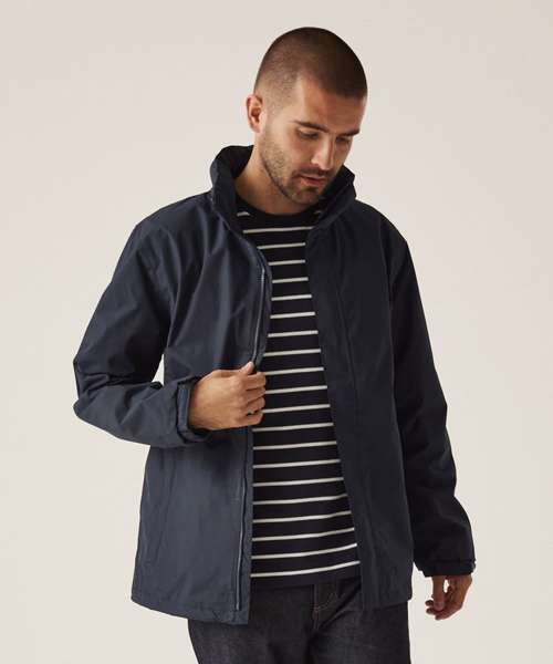 Stay warm and dry in this men's waterproof jacket. The jacket is finished with a durable protective coating to help shield from wind and rain. It's also lined with a polyester mesh for added comfort. The jacket is made from a peached polyester fabric for a fashionable design difference. An internal pocket with earphone cord access enables you to listen to your favourite tunes with ease.