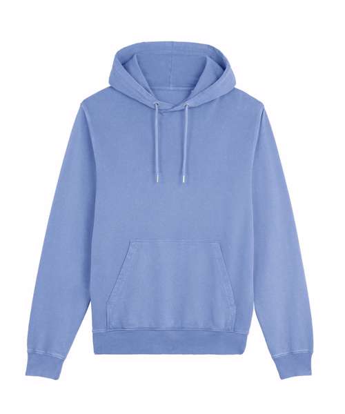 Unisex medium fit garment-dyed hoodie sweatshirt. Set-in sleeve. Double-layered hood in self- fabric. Round drawcords in matching body colour with closed metal tipping.
