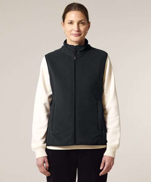Premium women’s sleeveless fleece jacket in 100% recycled polyester. Modern fit. 300gsm polar fleece with an anti-pill finish.