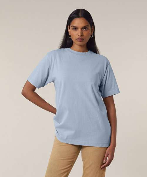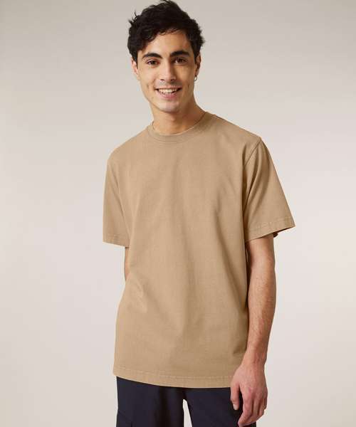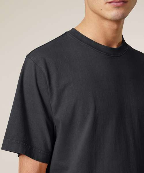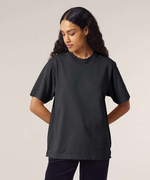 Premium, unisex, garment-dyed, heavy t-shirt in 100% organic carded cotton. Relaxed fit, dry hand feel , 240gsm. On-trend look and feel – ideal for music merchandise.