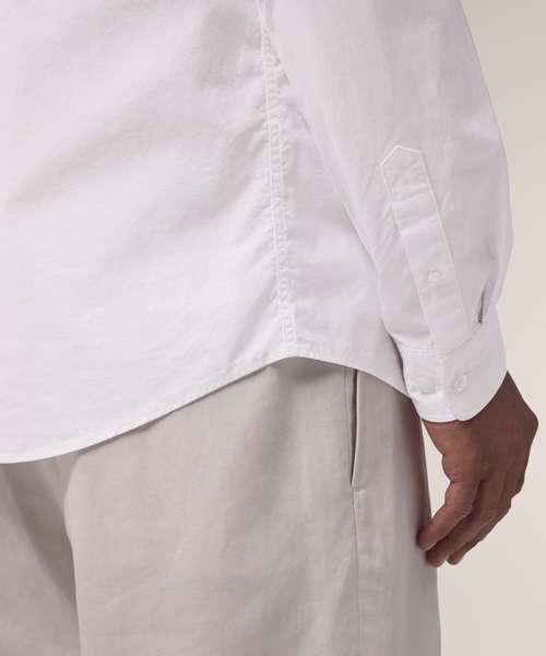The Stanley Styler poplin shirt for men. Medium fit. Point collar with single-needle topstitches. Collar stand. Front placket with single-needle topstitches on each side. Forwarded shoulder. Back yoke with box pleat. Inside yoke in self-fabric. Set-in sleeves. Sleeve placket with one button. Cuff with two buttons. Rounded cuff corners. Double pleats at cuff seam.