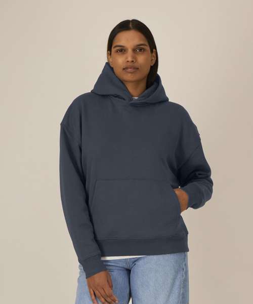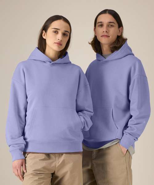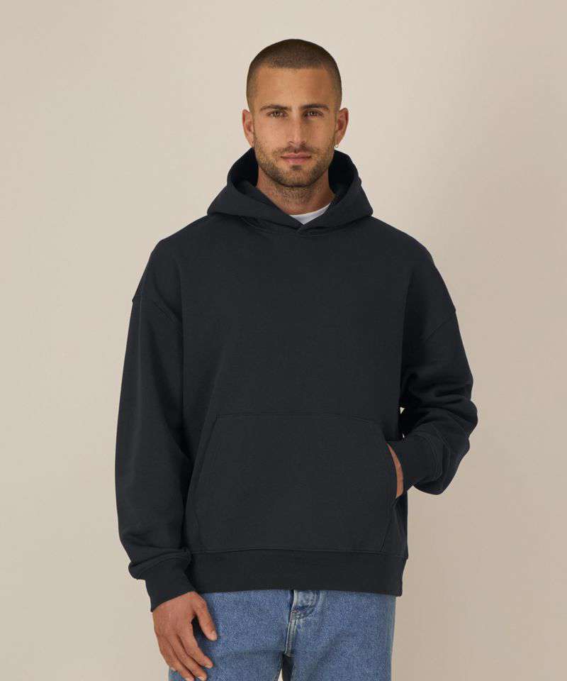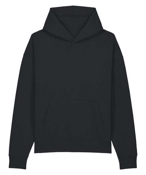 A trendy relaxed fit hoodie in 280gsm brushed fabric, without drawcord for a minimalist look – perfect for music merch, customisation and branding.