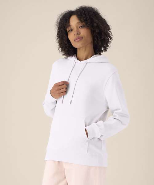 The Stella Gamechanger is a women’s recycled hoodie crafted from a soft recycled cotton blend. With its clean, medium fit, it’s ideal for corporate branding, lifestyle collections and everyday wear. It features a double-layered self-fabric hood, metal-tipped drawcords and embroidered eyelets for a refined finish. Twin-needle topstitching at the cuffs and hem ensures durability, while the kangaroo pocket and herringbone back neck tape offer comfort and practicality. Designed for decoration, this sustainable hoodie provides a smooth surface for print or embroidery in timeless, customisable style.