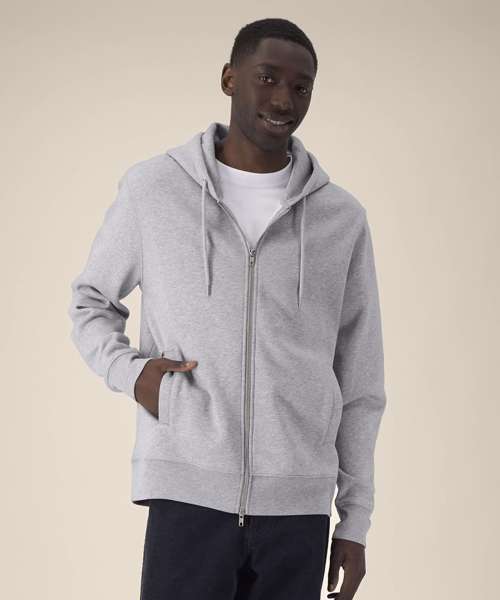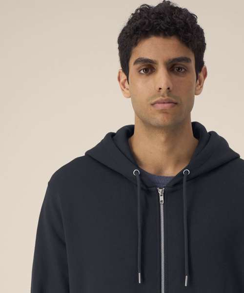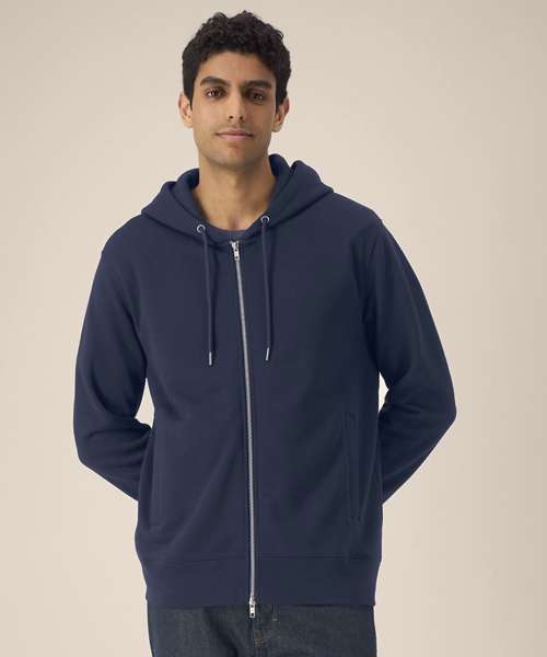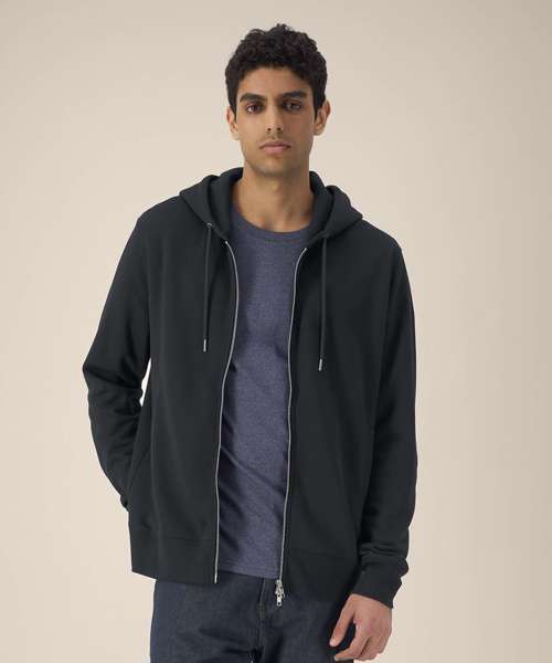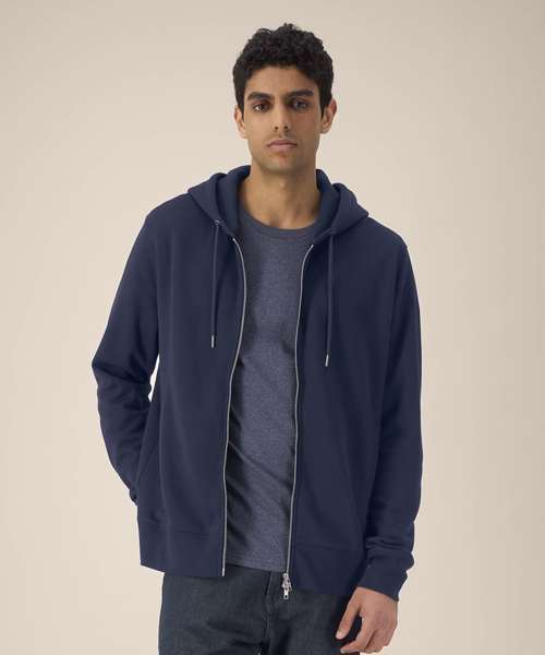 Unisex cotton modal zip-through hoodie. Set-in sleeves. Double-layered hood in self-fabric. Round drawcords in a matching colour. Closed-end metal tipping. Metal eyelets. 1x1 rib at sleeve cuffs and hem. Inside herringbone back neck tape. Self-fabric half-moon at the back neck. Welt pockets. Two-way zip at centre front. Contains 65% OCS-certified organic cotton, certified by Control Union CB-CUC-1393082. Contains 35% Modal (TENCEL™).
