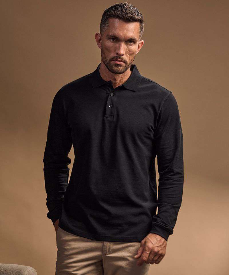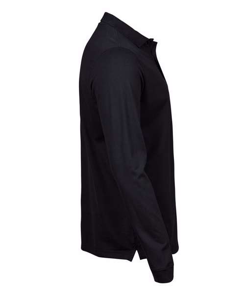 The Luxury stretch long sleeve polo is made from certified organic cotton and elastane fabric that offers excellent comfort and a perfect fit. It features a tailored fit, mini piqué fabric and a flat knit collar with elastane. The sleeves are finished with low-cut cuffs with elastane.