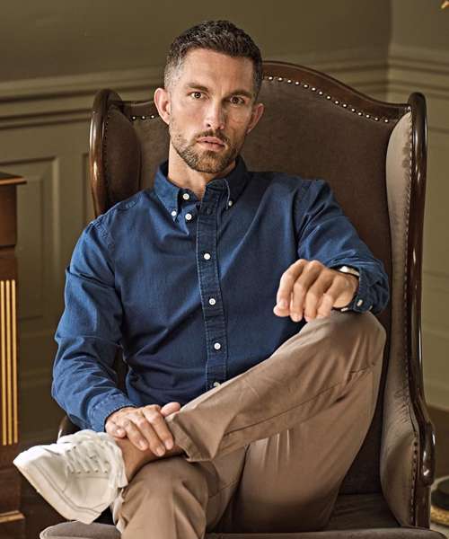 The washed, indigo, Casual twill shirt has a slim and comfortable fit, detailed with a button-down collar and a curved hem. It’s a relaxed choice for the office or a weekend lunch. With its button-down collar and indigo dye, this shirt strikes the perfect balance of rugged and refined.