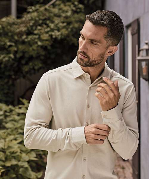Crafted from a premium blend of long-fibre certifed organic cotton and elastane, the Luxury stretch shirt offers natural softness with added stretch. It’s double pre-shrunk and enzyme-washed for a smooth finish and lasting fit. Featuring a self-fabric collar, buttoned cuffs and a full button placket, it’s your new, everyday essential!