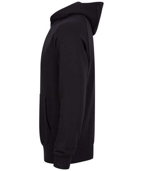 Keep it comfy in this on-trend unisex athleisure hoodie, featuring a longline slim-fit fora performance feel that also offers street style. Cut from an ultra-smooth brushed back fleece cotton-poly blend, this hoodie has an overhead hood, pouch pocket and ribbed trims for a custom fit. Finished with a tear-out label to make rebranding easy.