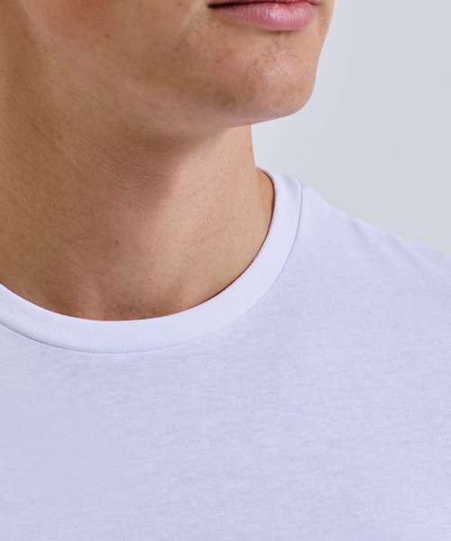 Organic cotton fabric. Crew neck. Short sleeve. Lightweight. Twin-needle stitching on hem and arms. The product contains no branded neck or waist label. Removable kimble or looped garment tags. The inner seam label holds important product information on one label with a second label containing brand information which can be cut-away.