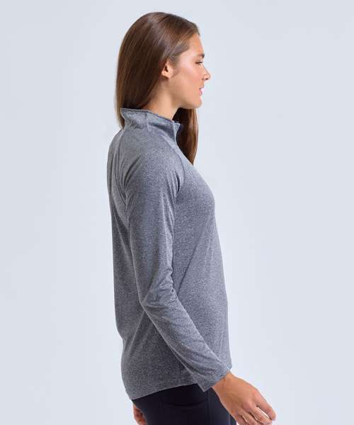 The women's TriDri® performance 1/4 zip is designed with soft, lightweight fabric that is perfect during outdoor workouts for bulk-free warmth.