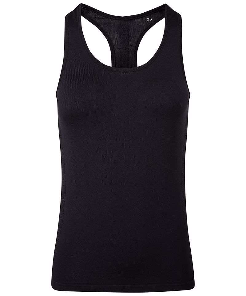 Seamless vest. Contrast detailing. Wicking fabric. Body sculpting design detailing. We recommend using block out vinyl and inks.Product contains no branded neck or waist label. Removable Kimble or looped garment tags. Inner seam label holds important product information on one label with a second label containing brand information which can be cut-away.