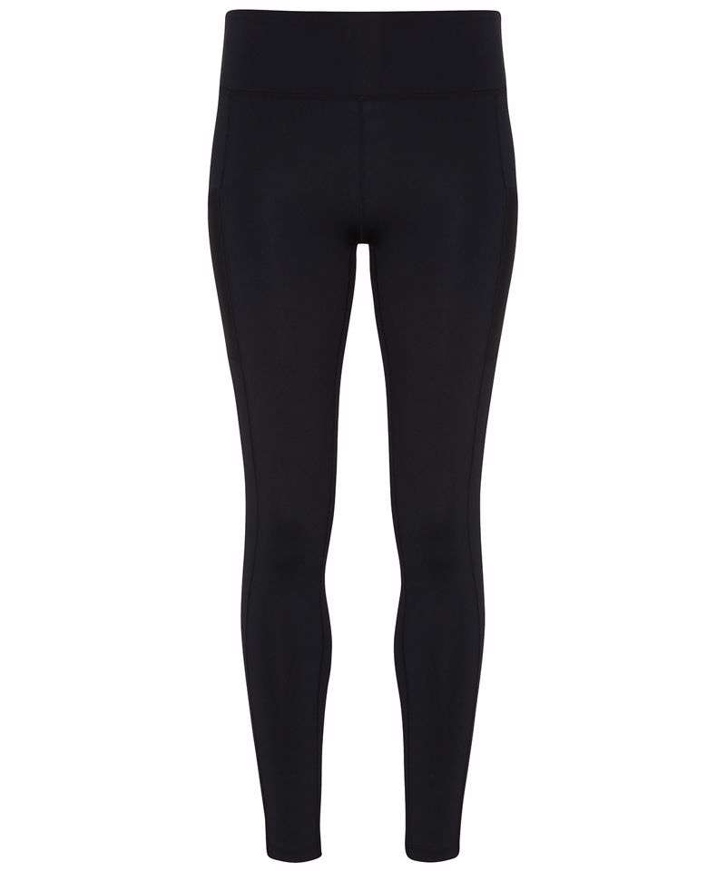 Full-length leggings. Soft stretch fabric. Elasticated waistband. Pocket inside waistband useful for storing locker keys. Compression fit. 2 mesh phone pockets, one on each side of the leg. We recommend using block out vinyl and inks.Product contains no branded neck or waist label. Removable Kimble or looped garment tags. Inner seam label holds important product information on one label with a second label containing brand information which can be cut-away.