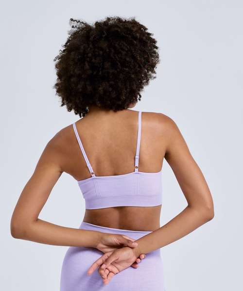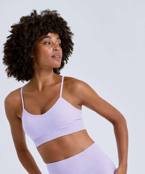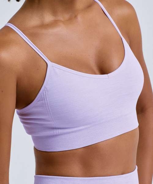 Seamless sports bra. Grown-on waistband. Wicking fabric. Body-sculpting design detailing with ribbed detailing along the sides and back. Medium impact. Removable padding. Adjustable straps. We recommend using block out vinyl and inks.Product contains no branded neck or waist label. Removable Kimble or looped garment tags. Inner seam label holds important product information on one label with a second label containing brand information which can be cut-away.