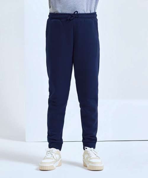 Made from soft cotton and recycled polyester these kid’s slim fit joggers are perfect for dance classes, P.E lessons, sports clubs or as casual everyday wear. Comfortable to wear, these joggers have an elasticated waistband with self-coloured ties and ribbed cuffs.