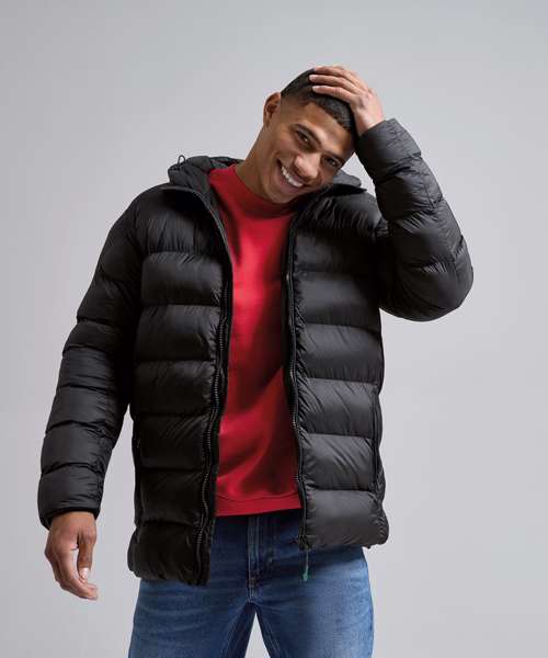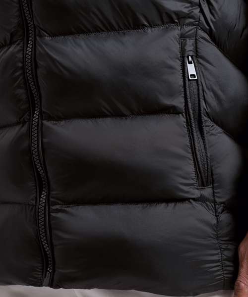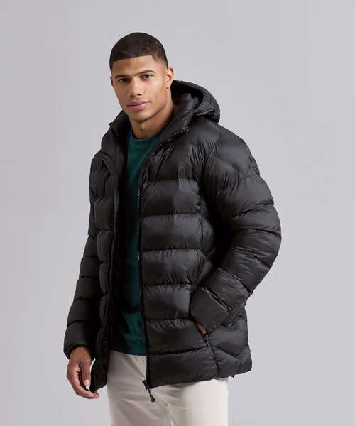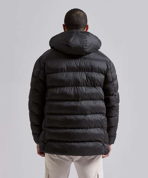 The Solitude recycled hooded jacket delivers padded perfection with sleek chevron side quilting for a contemporary look. Thoughtfully constructed with both internal and external pockets, it provides practical storage for essentials, on the go. Padded sleeves and soft, rib knit cuffs enhance warmth and comfort, making it a reliable choice for outdoor activities, cold-weather commutes or everyday wear.