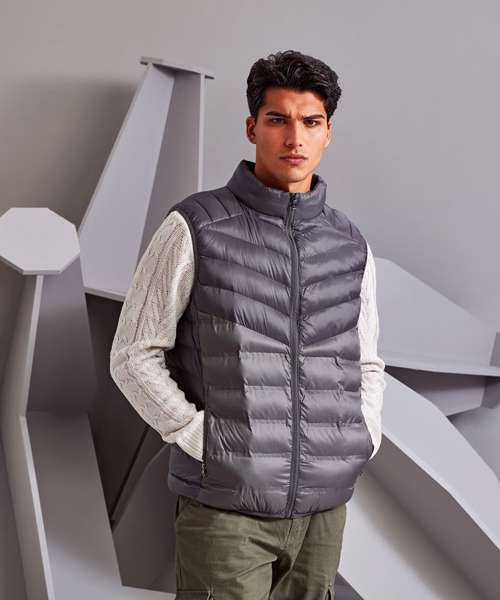 Reverse coil zip on centre front with signature zip puller and internal storm flap and chin guard. Moulded baffle panels on front and back. Diagonal ‘V’ stitched sandwiched baffles on front and back upper body panels with horizontal stitched baffles at side seams. 228gsm lightweight polyester fill. Internal binding on all seams. Pockets to have reverse coil zips with upper zip garages only. Stretch binding around armholes and hem for added protection. Product contains no branded neck label.* Removable Kimble or looped garment tags. Inner seam label holds important product information on one label with a second label containing brand information which can be cut-away.