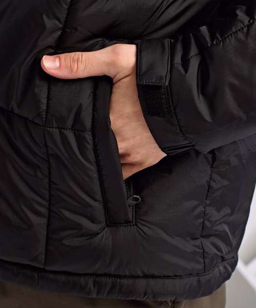 Padded jacket. Full-length zip with padded collar for warmth. Two zipped side pockets. Sleeves have adjustable hook and loop cuffs. Hemline has two adjustable cord toggles. One inner pocket and embroidery access to left chest. Showerproof. Product contains no branded neck label. Removable Kimble or looped garment tags. Inner seam label holds important product information on one label, with a second label containing brand information which can be cut away.