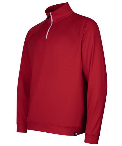 The UA midlayer QZ LB’s storm technology repels water without sacrificing breathability. Its midweight knit fabric – with soft, brushed interior and smooth, quick-drying, exterior, four-way stretch material – moves better in every direction, while a generous half-zip front makes for easy layering.